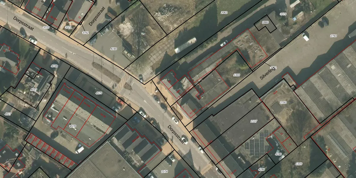 Het perceel waarop Dorpsstraat 59-A staat heeft een oppervlakte van 2525 m². Dit is een zeer groot perceel. De perceeloppervlakte wordt geregistreerd door het Kadaster. Gedetailleerde informatie over de maten van dit perceel kunt u vinden in het rapport Kadastrale kaart met maatvoering van Dorpsstraat 59-A.