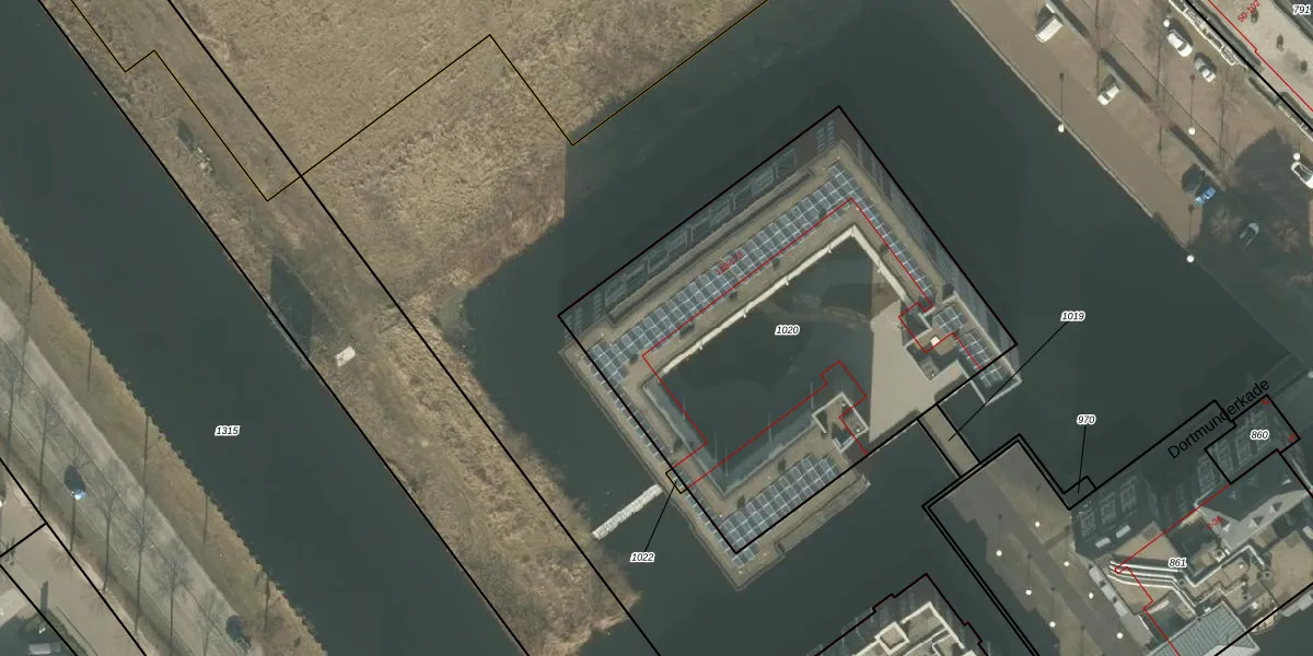 Het perceel waarop Dortmunderkade 118 staat heeft een oppervlakte van 2415 m². Dit is een zeer groot perceel. De perceeloppervlakte wordt geregistreerd door het Kadaster. Gedetailleerde informatie over de maten van dit perceel kunt u vinden in het rapport Kadastrale kaart met maatvoering van Dortmunderkade 118.