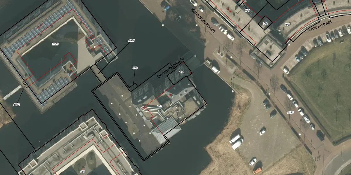 Dortmunderkade 13 is gelegen op kadastraal perceel HMD00F861. Deze kadastrale aanduiding is uniek en wordt gebruikt door het Kadaster om eigendomsrechten en andere zakelijke rechten vast te leggen. Het perceel maakt onderdeel uit van de kadastrale gemeente Helmond.