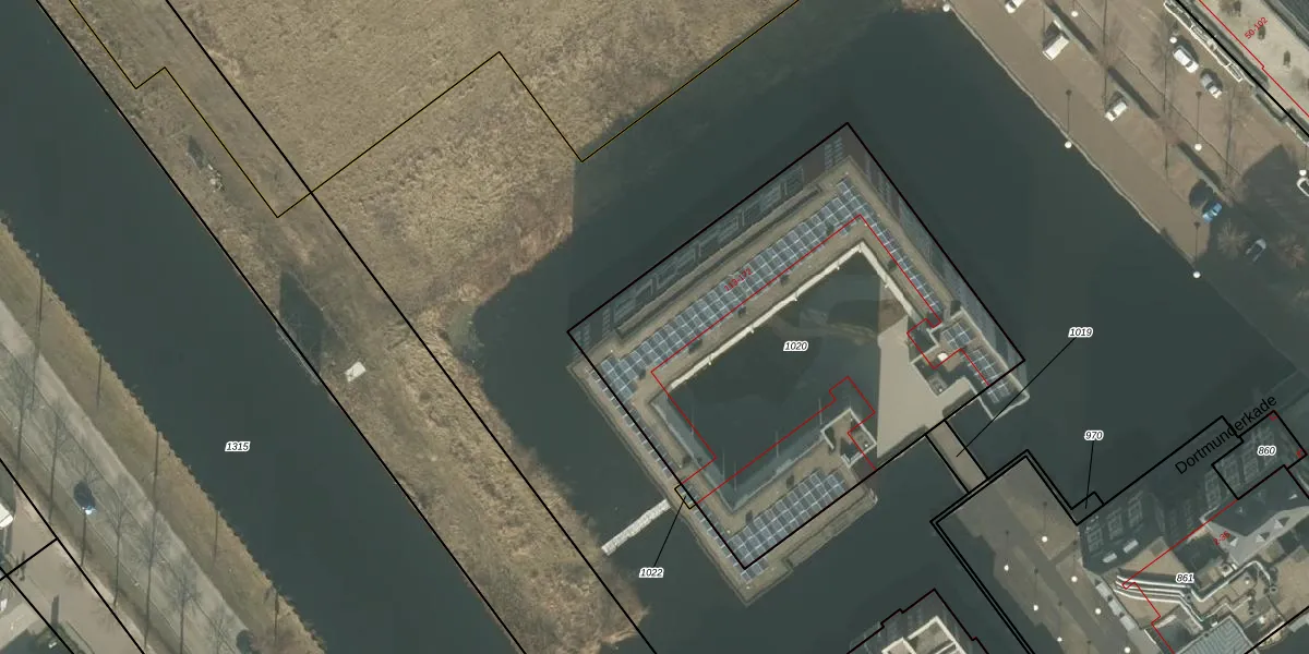 Het perceel waarop Dortmunderkade 130 staat heeft een oppervlakte van 2415 m². Dit is een zeer groot perceel. De perceeloppervlakte wordt geregistreerd door het Kadaster. Gedetailleerde informatie over de maten van dit perceel kunt u vinden in het rapport Kadastrale kaart met maatvoering van Dortmunderkade 130.