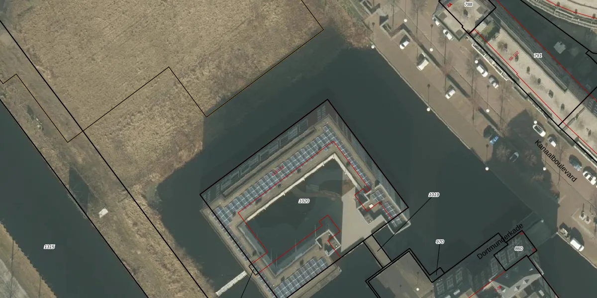 Het perceel waarop Dortmunderkade 133 staat heeft een oppervlakte van 2415 m². Dit is een zeer groot perceel. De perceeloppervlakte wordt geregistreerd door het Kadaster. Gedetailleerde informatie over de maten van dit perceel kunt u vinden in het rapport Kadastrale kaart met maatvoering van Dortmunderkade 133.