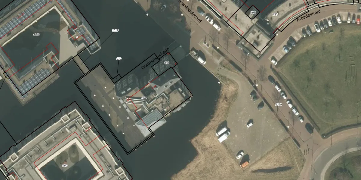 Dortmunderkade 36 is gelegen op kadastraal perceel HMD00F861. Deze kadastrale aanduiding is uniek en wordt gebruikt door het Kadaster om eigendomsrechten en andere zakelijke rechten vast te leggen. Het perceel maakt onderdeel uit van de kadastrale gemeente Helmond.