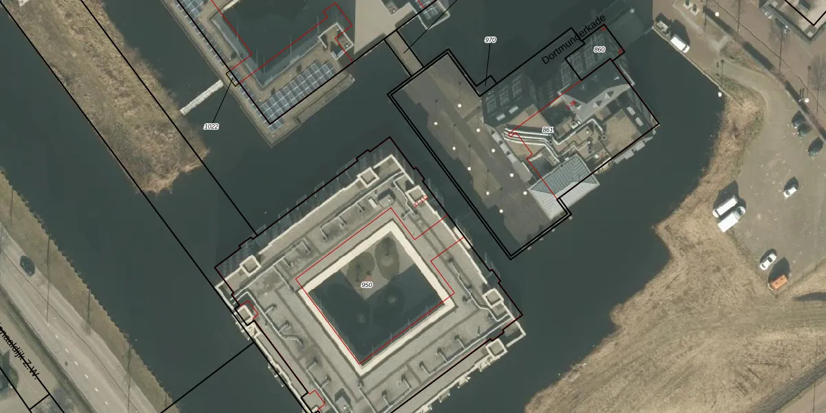 Het perceel waarop Dortmunderkade 49 staat heeft een oppervlakte van 2880 m². Dit is een zeer groot perceel. De perceeloppervlakte wordt geregistreerd door het Kadaster. Gedetailleerde informatie over de maten van dit perceel kunt u vinden in het rapport Kadastrale kaart met maatvoering van Dortmunderkade 49.