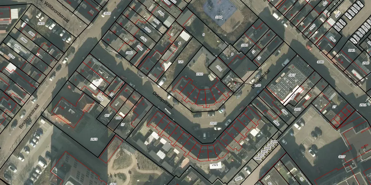 Drietipstraat 16 is gelegen op kadastraal perceel HMD00I2322. Deze kadastrale aanduiding is uniek en wordt gebruikt door het Kadaster om eigendomsrechten en andere zakelijke rechten vast te leggen. Het perceel maakt onderdeel uit van de kadastrale gemeente Helmond.