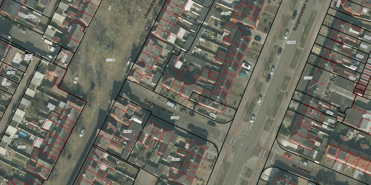 Het perceel waarop Eekhoornstraat 15 staat heeft een oppervlakte van 3538 m². Dit is een zeer groot perceel. De perceeloppervlakte wordt geregistreerd door het Kadaster. Gedetailleerde informatie over de maten van dit perceel kunt u vinden in het rapport Kadastrale kaart met maatvoering van Eekhoornstraat 15.