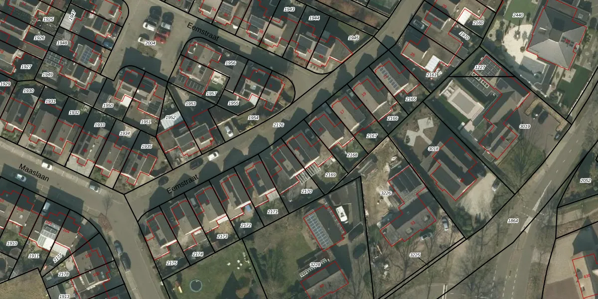 Het perceel waarop Eemstraat 13 staat heeft een oppervlakte van 246 m². Dit is een middelgroot perceel. De perceeloppervlakte wordt geregistreerd door het Kadaster. Gedetailleerde informatie over de maten van dit perceel kunt u vinden in het rapport Kadastrale kaart met maatvoering van Eemstraat 13.