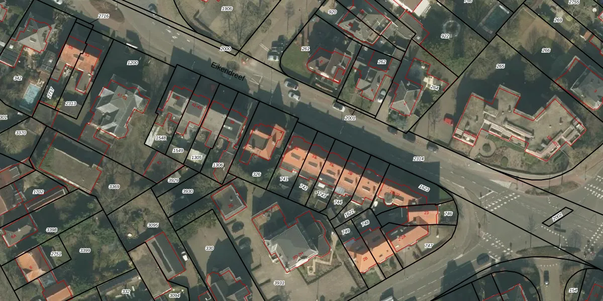 Gebruik de zoekbalk of klik op een perceel voor informatie over de adressen binnen dit perceel.
