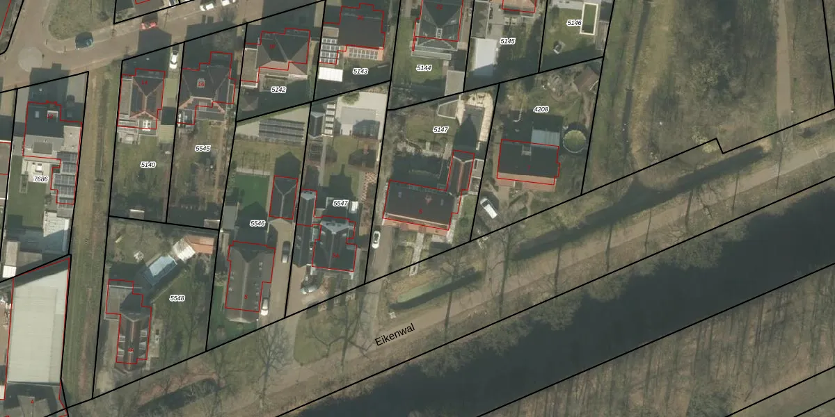 Het perceel waarop Eikenwal 6 staat heeft een oppervlakte van 986 m². Dit is een groot perceel. De perceeloppervlakte wordt geregistreerd door het Kadaster. Gedetailleerde informatie over de maten van dit perceel kunt u vinden in het rapport Kadastrale kaart met maatvoering van Eikenwal 6.