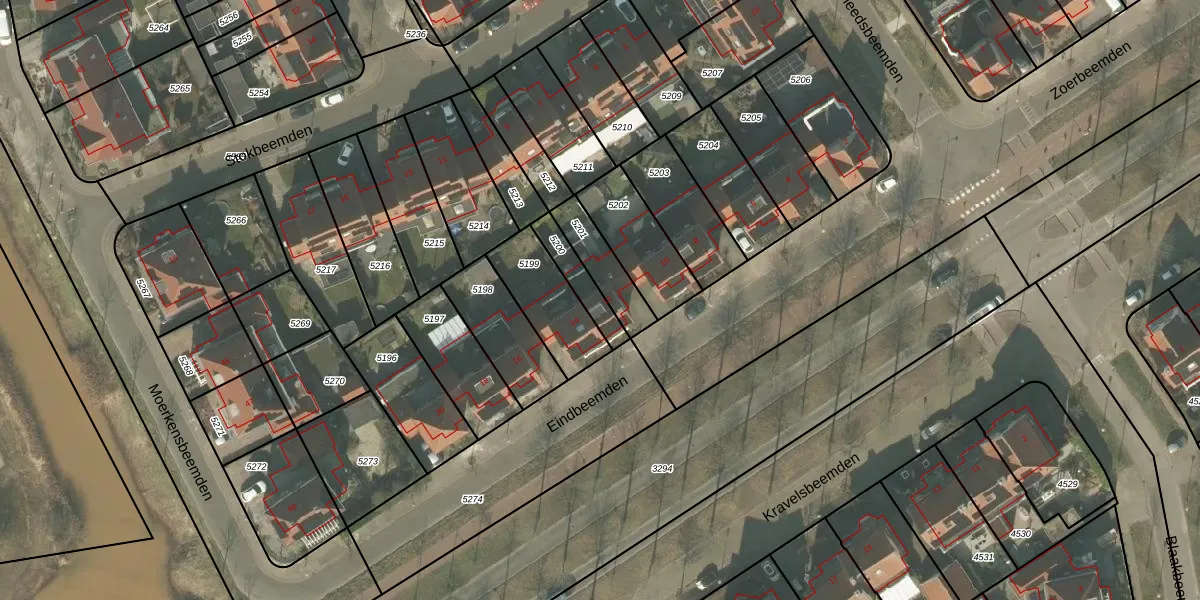 Eindbeemden 12 is gelegen op kadastraal perceel HMD00U5200. Deze kadastrale aanduiding is uniek en wordt gebruikt door het Kadaster om eigendomsrechten en andere zakelijke rechten vast te leggen. Het perceel maakt onderdeel uit van de kadastrale gemeente Helmond.
