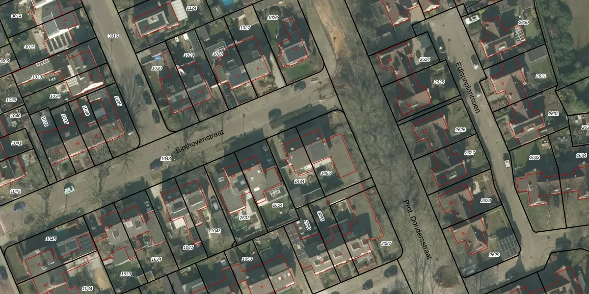 Einthovenstraat 3 is gelegen op kadastraal perceel HMD00G1484. Deze kadastrale aanduiding is uniek en wordt gebruikt door het Kadaster om eigendomsrechten en andere zakelijke rechten vast te leggen. Het perceel maakt onderdeel uit van de kadastrale gemeente Helmond.