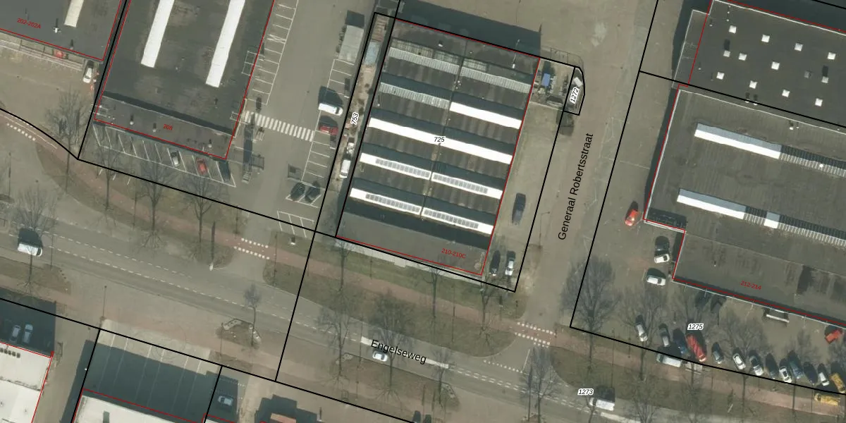 Engelseweg 210 is gelegen op kadastraal perceel HMD00H725. Deze kadastrale aanduiding is uniek en wordt gebruikt door het Kadaster om eigendomsrechten en andere zakelijke rechten vast te leggen. Het perceel maakt onderdeel uit van de kadastrale gemeente Helmond.