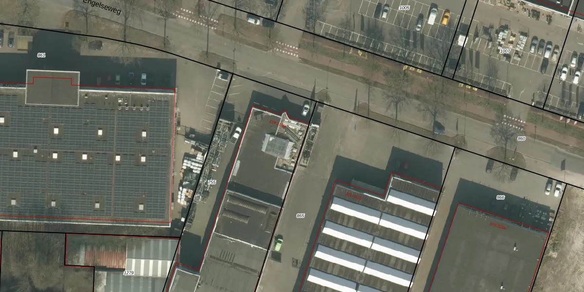 Engelseweg 219 is gelegen op kadastraal perceel HMD00H755. Deze kadastrale aanduiding is uniek en wordt gebruikt door het Kadaster om eigendomsrechten en andere zakelijke rechten vast te leggen. Het perceel maakt onderdeel uit van de kadastrale gemeente Helmond.
