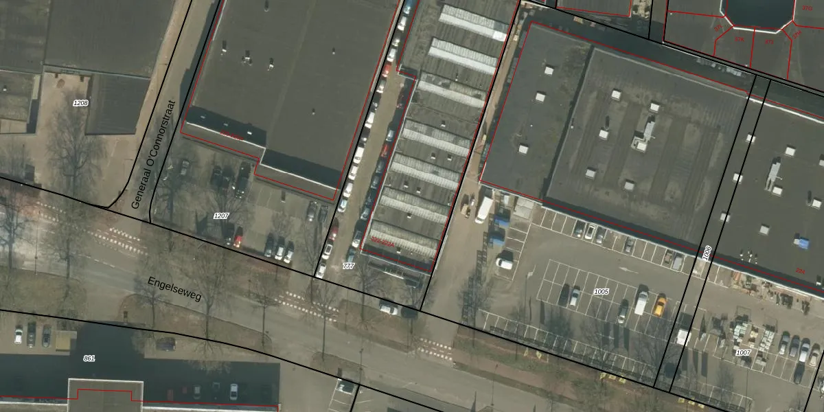 Engelseweg 222 is gelegen op kadastraal perceel HMD00H777. Deze kadastrale aanduiding is uniek en wordt gebruikt door het Kadaster om eigendomsrechten en andere zakelijke rechten vast te leggen. Het perceel maakt onderdeel uit van de kadastrale gemeente Helmond.
