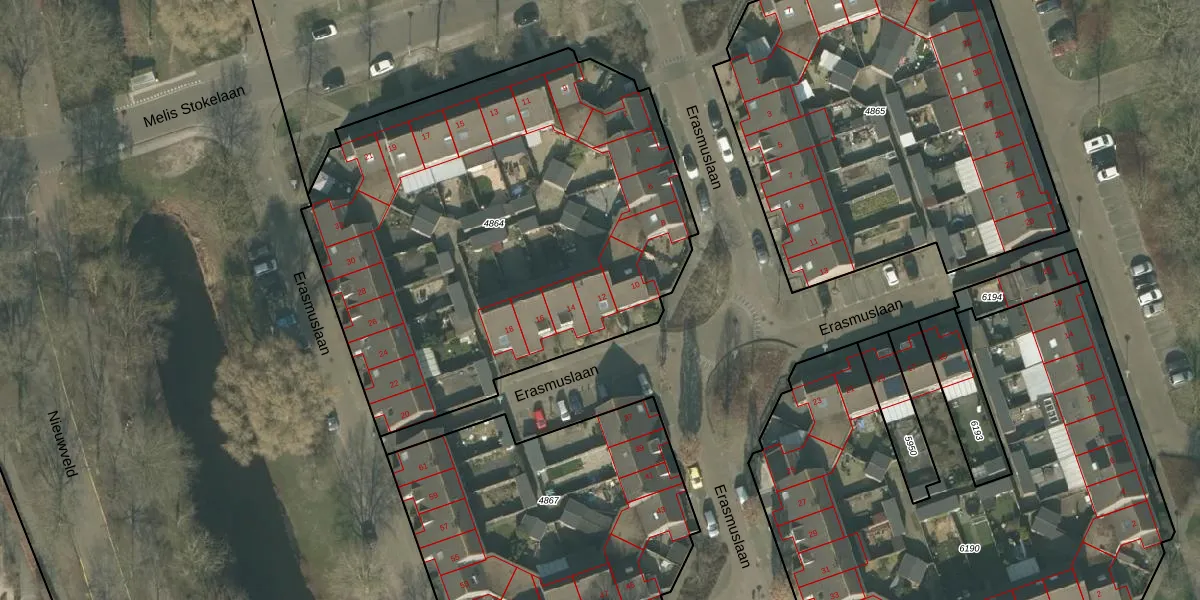 Het perceel waarop Erasmuslaan 12 staat heeft een oppervlakte van 2823 m². Dit is een zeer groot perceel. De perceeloppervlakte wordt geregistreerd door het Kadaster. Gedetailleerde informatie over de maten van dit perceel kunt u vinden in het rapport Kadastrale kaart met maatvoering van Erasmuslaan 12.