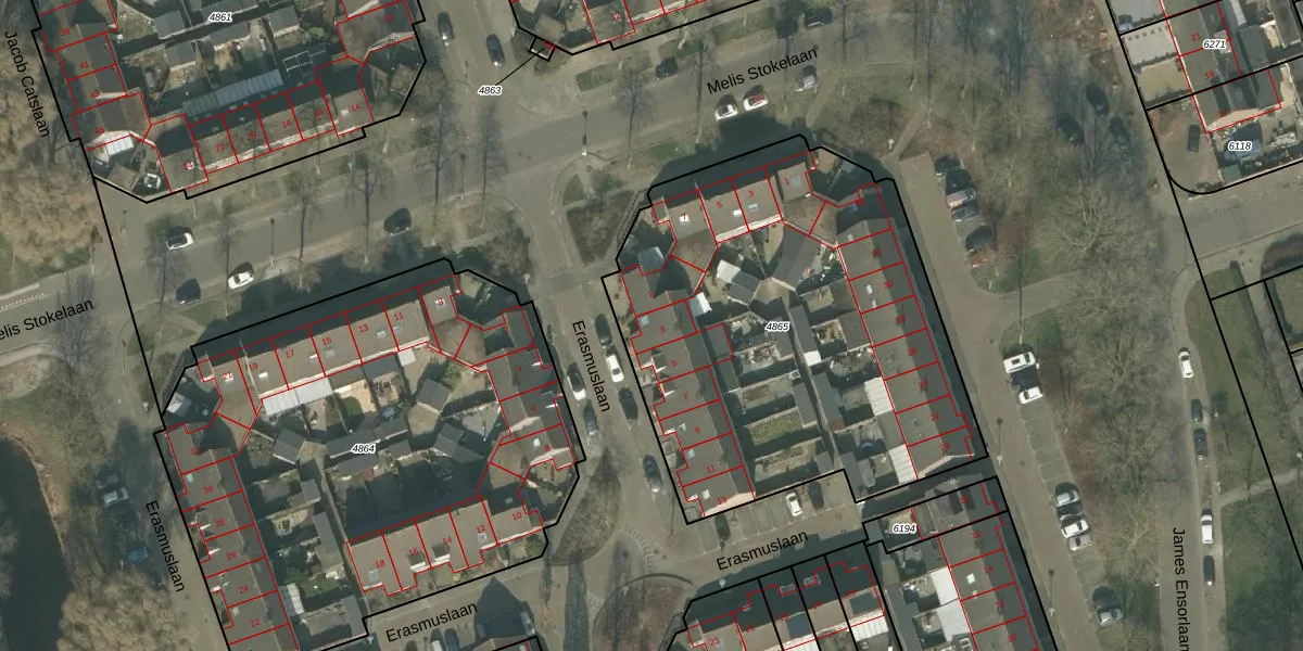 Erasmuslaan 3 is gelegen op kadastraal perceel HMD00B4865. Deze kadastrale aanduiding is uniek en wordt gebruikt door het Kadaster om eigendomsrechten en andere zakelijke rechten vast te leggen. Het perceel maakt onderdeel uit van de kadastrale gemeente Helmond.