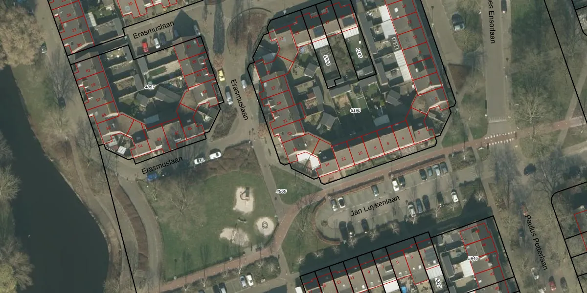Het perceel waarop Erasmuslaan 35 staat heeft een oppervlakte van 3118 m². Dit is een zeer groot perceel. De perceeloppervlakte wordt geregistreerd door het Kadaster. Gedetailleerde informatie over de maten van dit perceel kunt u vinden in het rapport Kadastrale kaart met maatvoering van Erasmuslaan 35.