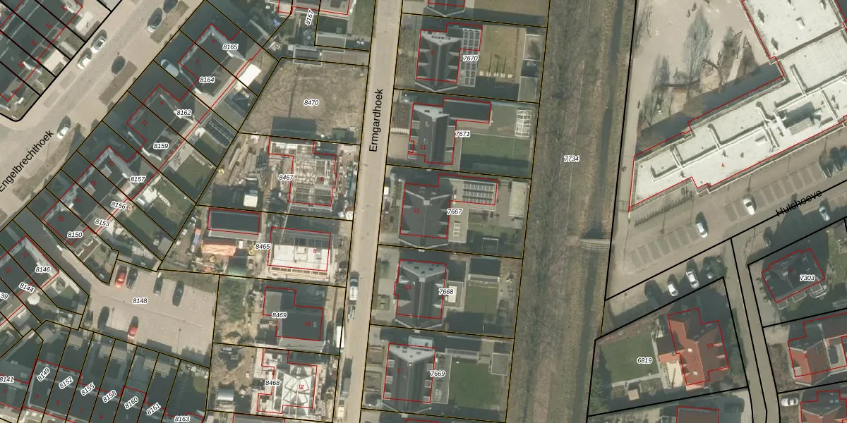 Het perceel waarop Ermgardhoek 13 staat heeft een oppervlakte van 656 m². Dit is een groot perceel. De perceeloppervlakte wordt geregistreerd door het Kadaster. Gedetailleerde informatie over de maten van dit perceel kunt u vinden in het rapport Kadastrale kaart met maatvoering van Ermgardhoek 13.