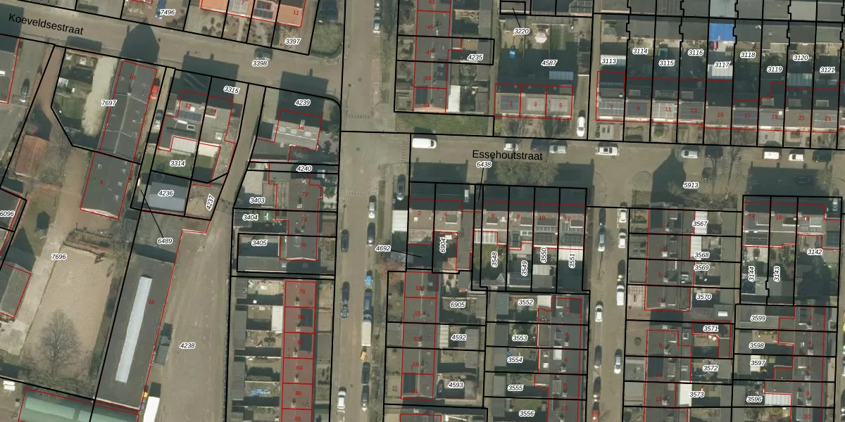 Essehoutstraat 2 is gelegen op kadastraal perceel HMD00T4692. Deze kadastrale aanduiding is uniek en wordt gebruikt door het Kadaster om eigendomsrechten en andere zakelijke rechten vast te leggen. Het perceel maakt onderdeel uit van de kadastrale gemeente Helmond.