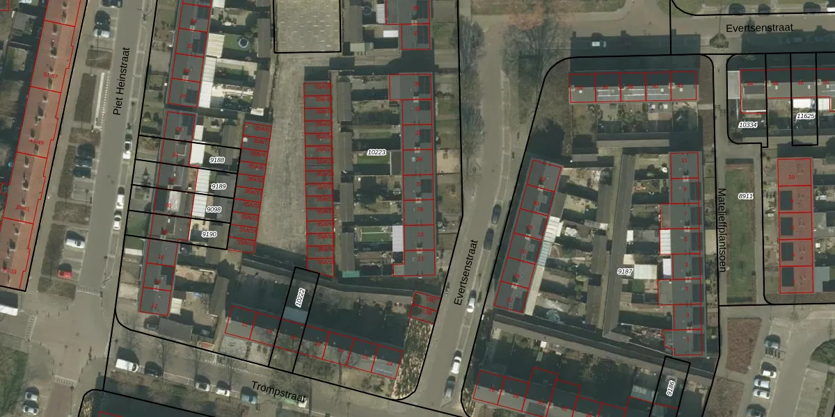 Het perceel waarop Evertsenstraat 25 staat heeft een oppervlakte van 6893 m². Dit is een zeer groot perceel. De perceeloppervlakte wordt geregistreerd door het Kadaster. Gedetailleerde informatie over de maten van dit perceel kunt u vinden in het rapport Kadastrale kaart met maatvoering van Evertsenstraat 25.