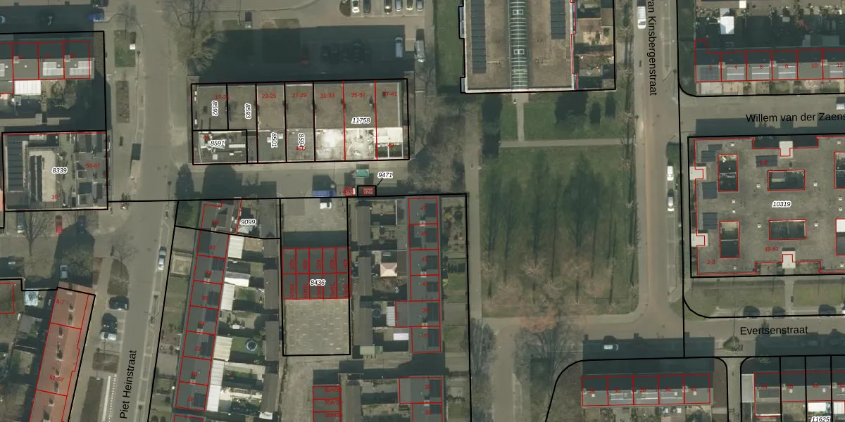 Het perceel waarop Evertsenstraat 47 staat heeft een oppervlakte van 6893 m². Dit is een zeer groot perceel. De perceeloppervlakte wordt geregistreerd door het Kadaster. Gedetailleerde informatie over de maten van dit perceel kunt u vinden in het rapport Kadastrale kaart met maatvoering van Evertsenstraat 47.