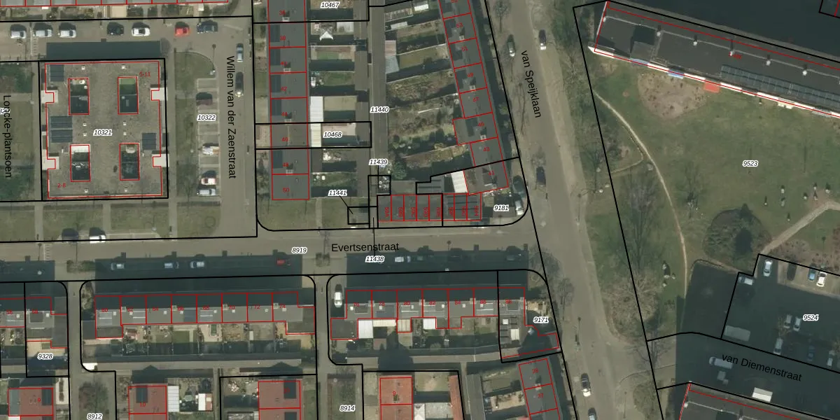 Het perceel waarop Evertsenstraat 59-D staat heeft een oppervlakte van 2644 m². Dit is een zeer groot perceel. De perceeloppervlakte wordt geregistreerd door het Kadaster. Gedetailleerde informatie over de maten van dit perceel kunt u vinden in het rapport Kadastrale kaart met maatvoering van Evertsenstraat 59-D.