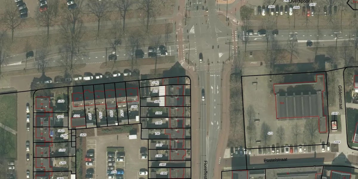 Floreffestraat 21 is gelegen op kadastraal perceel HMD00H819. Deze kadastrale aanduiding is uniek en wordt gebruikt door het Kadaster om eigendomsrechten en andere zakelijke rechten vast te leggen. Het perceel maakt onderdeel uit van de kadastrale gemeente Helmond.