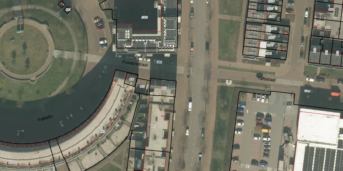 Frontonstraat 1 is gelegen op kadastraal perceel HMD00F802. Deze kadastrale aanduiding is uniek en wordt gebruikt door het Kadaster om eigendomsrechten en andere zakelijke rechten vast te leggen. Het perceel maakt onderdeel uit van de kadastrale gemeente Helmond.