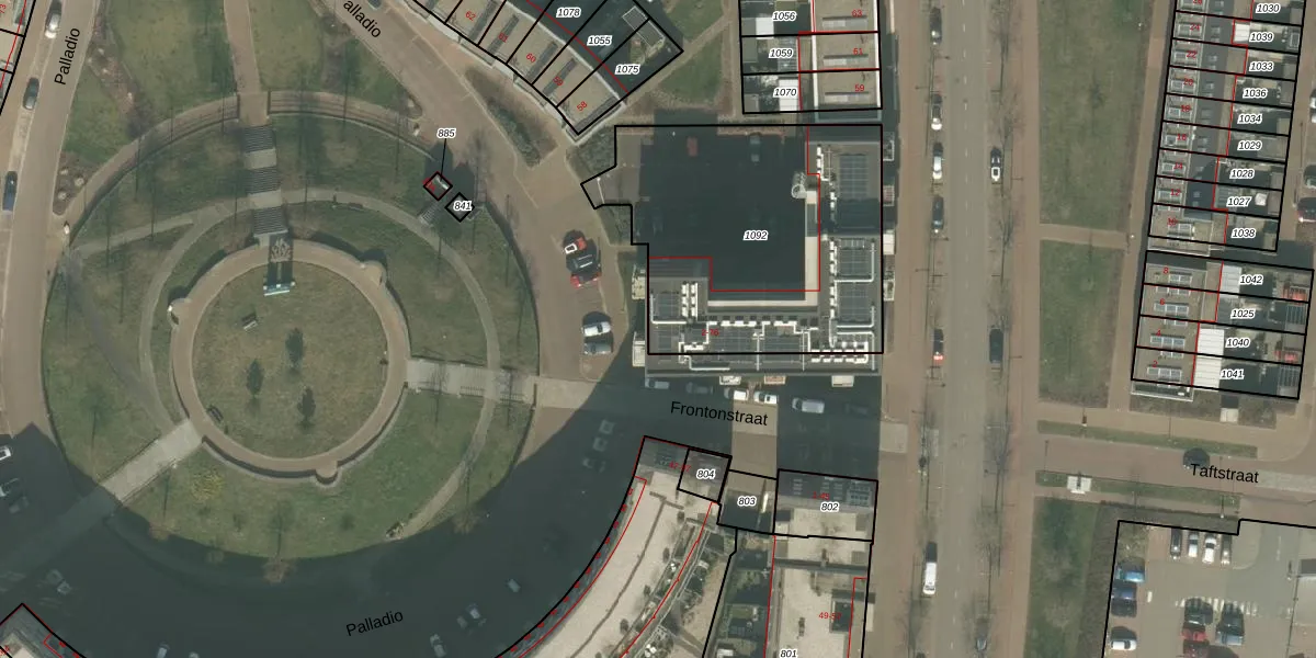 Het perceel waarop Frontonstraat 10 staat heeft een oppervlakte van 1330 m². Dit is een zeer groot perceel. De perceeloppervlakte wordt geregistreerd door het Kadaster. Gedetailleerde informatie over de maten van dit perceel kunt u vinden in het rapport Kadastrale kaart met maatvoering van Frontonstraat 10.