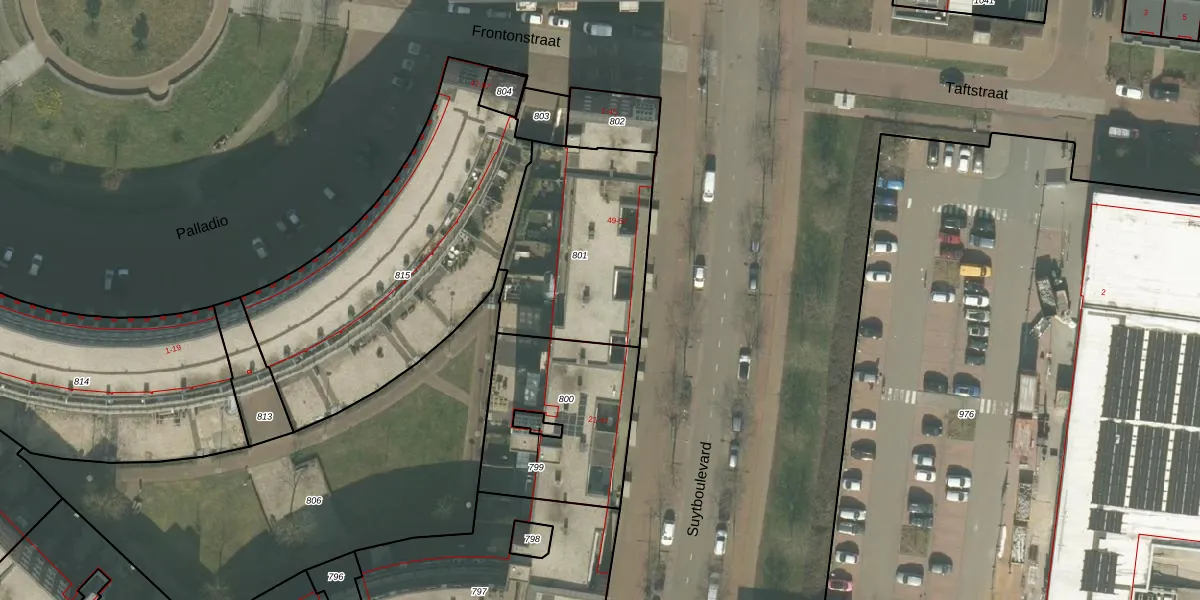 Frontonstraat 19 is gelegen op kadastraal perceel HMD00F801. Deze kadastrale aanduiding is uniek en wordt gebruikt door het Kadaster om eigendomsrechten en andere zakelijke rechten vast te leggen. Het perceel maakt onderdeel uit van de kadastrale gemeente Helmond.