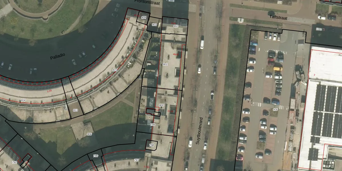 Het perceel waarop Frontonstraat 21 staat heeft een oppervlakte van 737 m². Dit is een groot perceel. De perceeloppervlakte wordt geregistreerd door het Kadaster. Gedetailleerde informatie over de maten van dit perceel kunt u vinden in het rapport Kadastrale kaart met maatvoering van Frontonstraat 21.