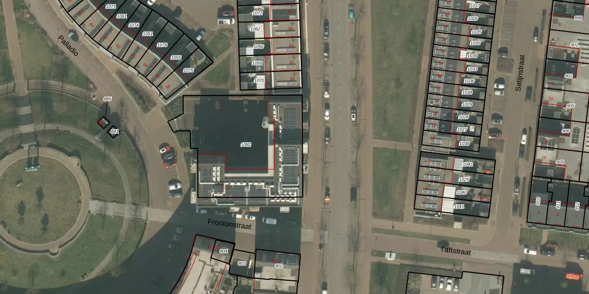 Het perceel waarop Frontonstraat 22 staat heeft een oppervlakte van 1330 m². Dit is een zeer groot perceel. De perceeloppervlakte wordt geregistreerd door het Kadaster. Gedetailleerde informatie over de maten van dit perceel kunt u vinden in het rapport Kadastrale kaart met maatvoering van Frontonstraat 22.