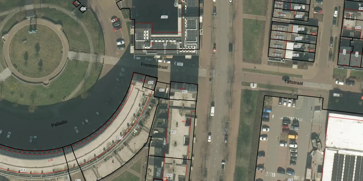 Frontonstraat 23 is gelegen op kadastraal perceel HMD00F802. Deze kadastrale aanduiding is uniek en wordt gebruikt door het Kadaster om eigendomsrechten en andere zakelijke rechten vast te leggen. Het perceel maakt onderdeel uit van de kadastrale gemeente Helmond.