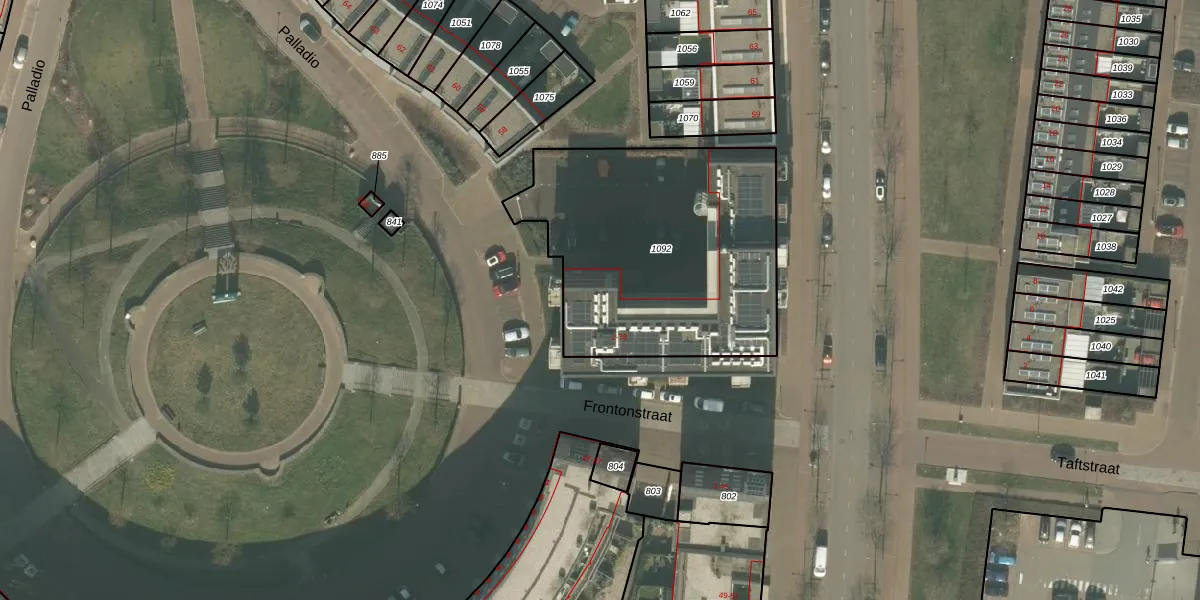 Het perceel waarop Frontonstraat 30 staat heeft een oppervlakte van 1330 m². Dit is een zeer groot perceel. De perceeloppervlakte wordt geregistreerd door het Kadaster. Gedetailleerde informatie over de maten van dit perceel kunt u vinden in het rapport Kadastrale kaart met maatvoering van Frontonstraat 30.