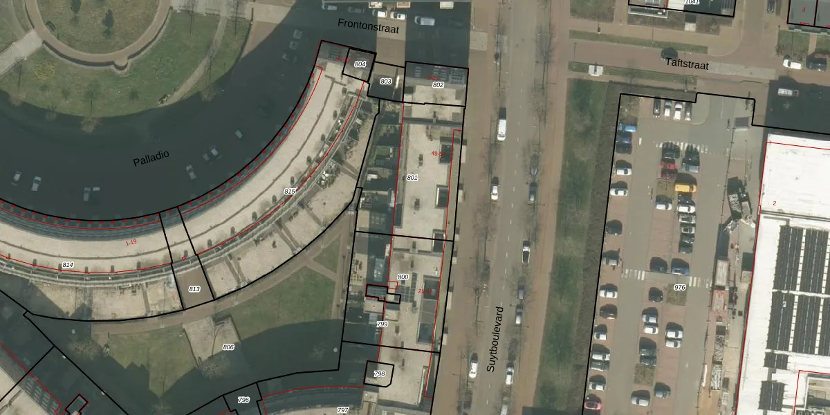 Frontonstraat 33 is gelegen op kadastraal perceel HMD00F801. Deze kadastrale aanduiding is uniek en wordt gebruikt door het Kadaster om eigendomsrechten en andere zakelijke rechten vast te leggen. Het perceel maakt onderdeel uit van de kadastrale gemeente Helmond.