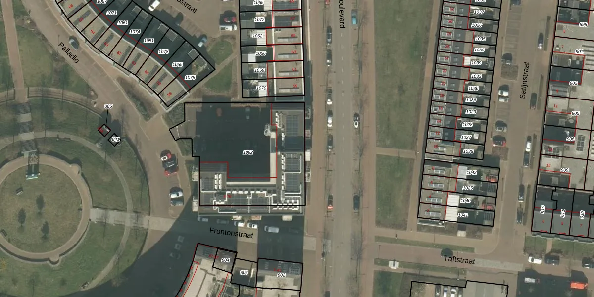 Frontonstraat 40 is gelegen op kadastraal perceel HMD00F1092. Deze kadastrale aanduiding is uniek en wordt gebruikt door het Kadaster om eigendomsrechten en andere zakelijke rechten vast te leggen. Het perceel maakt onderdeel uit van de kadastrale gemeente Helmond.