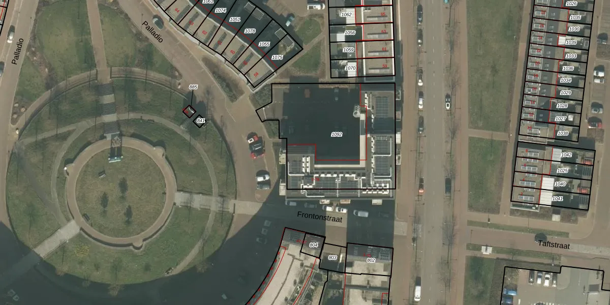 Het perceel waarop Frontonstraat 48 staat heeft een oppervlakte van 1330 m². Dit is een zeer groot perceel. De perceeloppervlakte wordt geregistreerd door het Kadaster. Gedetailleerde informatie over de maten van dit perceel kunt u vinden in het rapport Kadastrale kaart met maatvoering van Frontonstraat 48.
