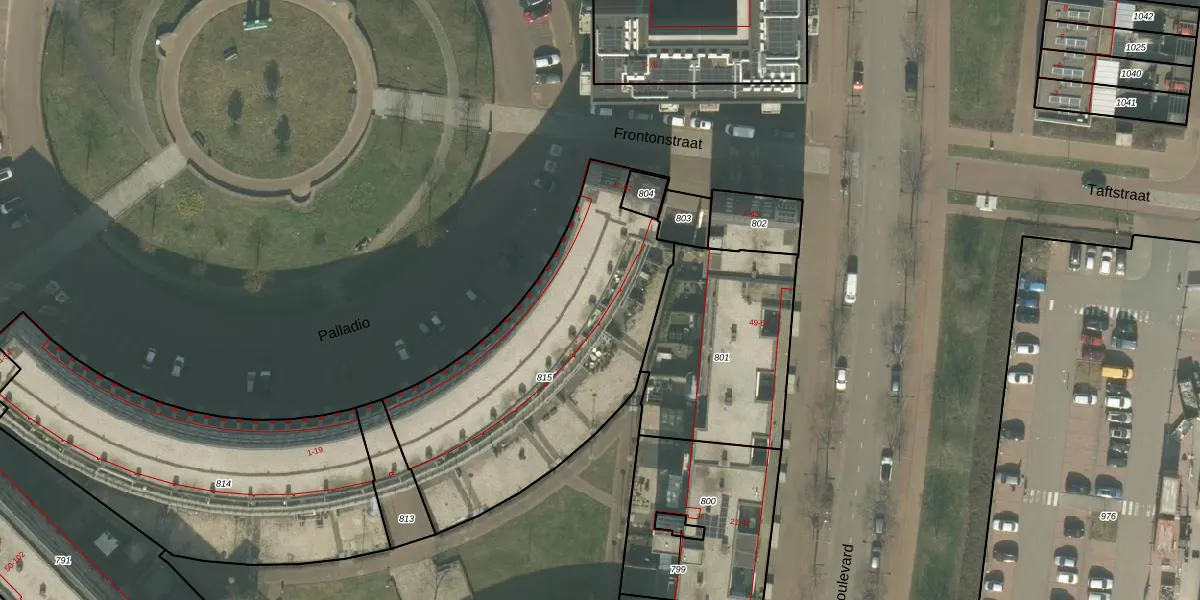 Het perceel waarop Frontonstraat 51 staat heeft een oppervlakte van 1363 m². Dit is een zeer groot perceel. De perceeloppervlakte wordt geregistreerd door het Kadaster. Gedetailleerde informatie over de maten van dit perceel kunt u vinden in het rapport Kadastrale kaart met maatvoering van Frontonstraat 51.