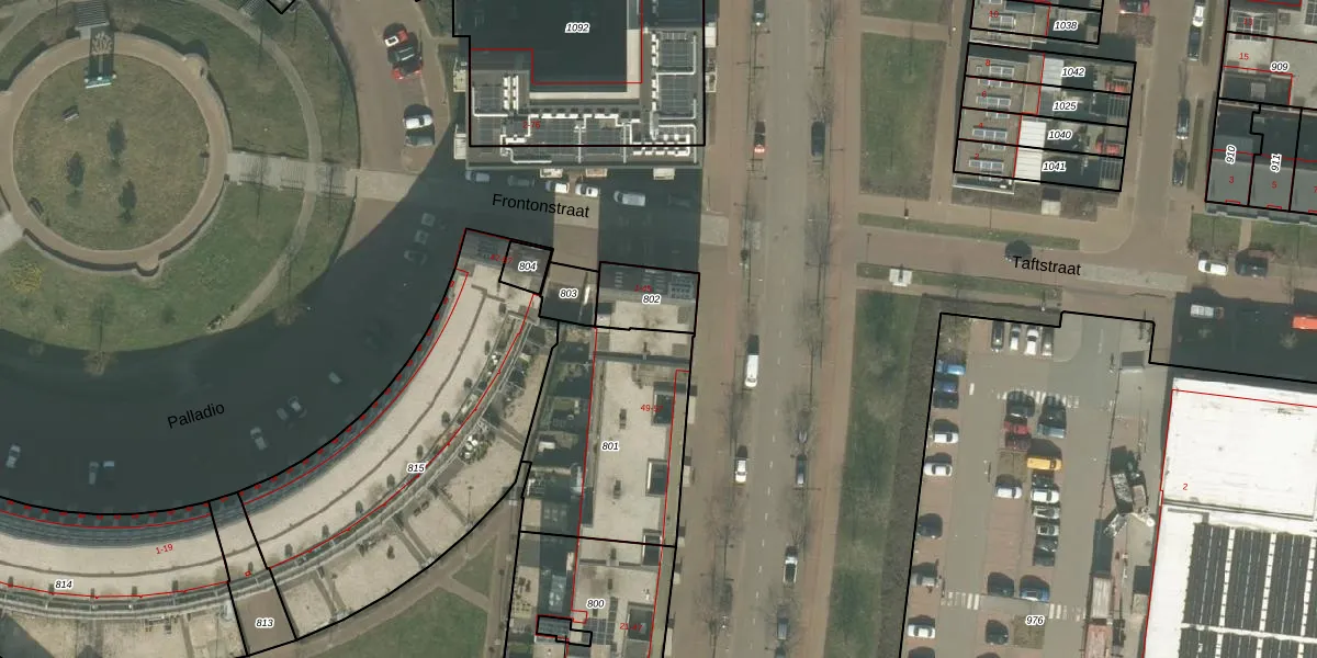 Frontonstraat 7 is gelegen op kadastraal perceel HMD00F802. Deze kadastrale aanduiding is uniek en wordt gebruikt door het Kadaster om eigendomsrechten en andere zakelijke rechten vast te leggen. Het perceel maakt onderdeel uit van de kadastrale gemeente Helmond.