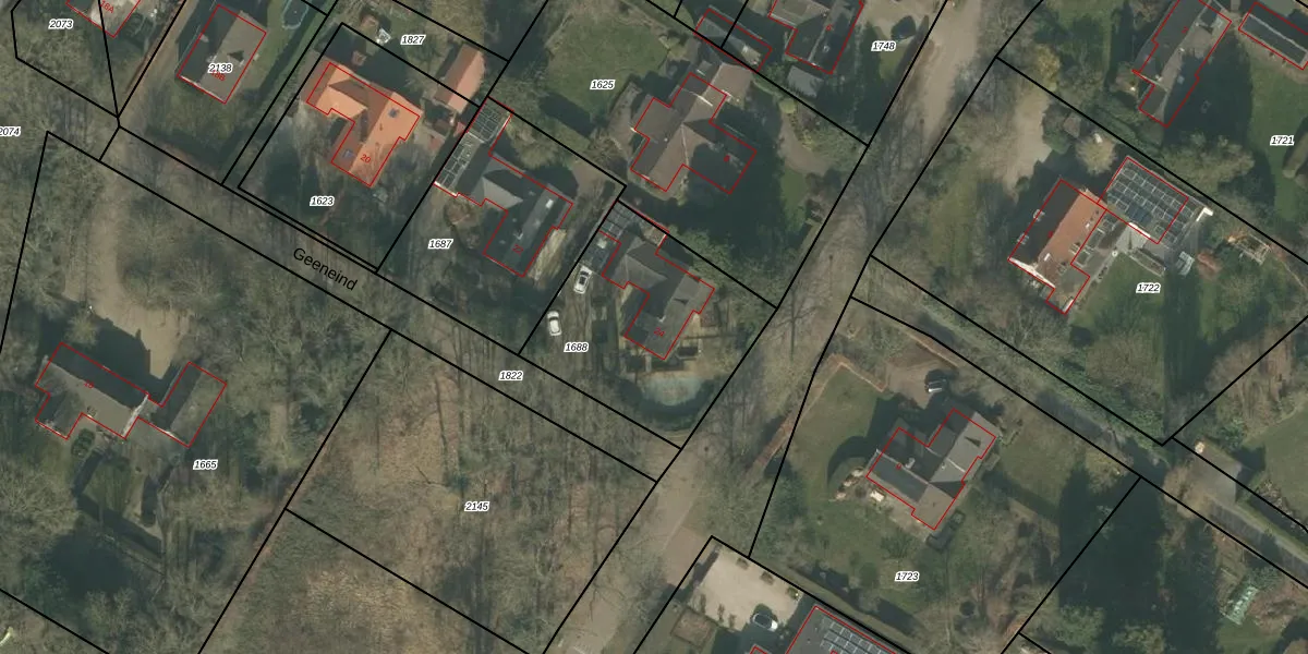 Het perceel waarop Geeneind 24 staat heeft een oppervlakte van 795 m². Dit is een groot perceel. De perceeloppervlakte wordt geregistreerd door het Kadaster. Gedetailleerde informatie over de maten van dit perceel kunt u vinden in het rapport Kadastrale kaart met maatvoering van Geeneind 24.