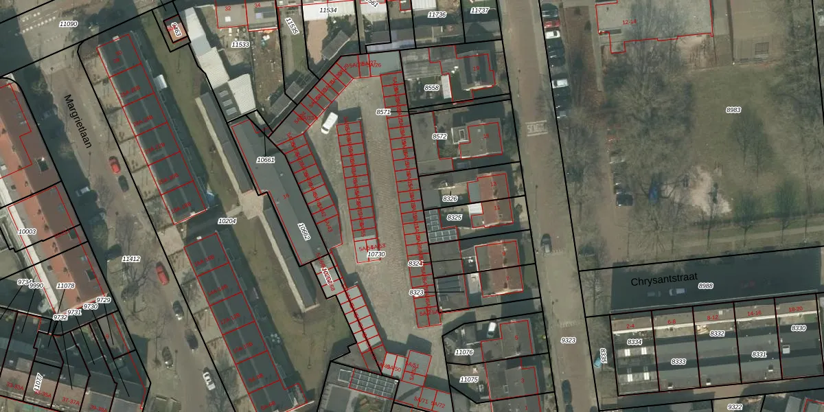 Het perceel waarop Gladiolenstraat 5-A-12 staat heeft een oppervlakte van 2128 m². Dit is een zeer groot perceel. De perceeloppervlakte wordt geregistreerd door het Kadaster. Gedetailleerde informatie over de maten van dit perceel kunt u vinden in het rapport Kadastrale kaart met maatvoering van Gladiolenstraat 5-A-12.