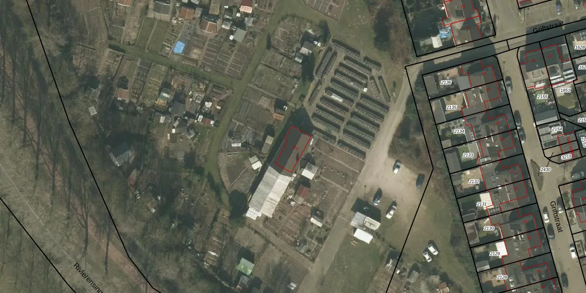 Het perceel waarop Griftstraat 31-A staat heeft een oppervlakte van 2,9 ha. Dit is een zeer groot perceel. De perceeloppervlakte wordt geregistreerd door het Kadaster. Gedetailleerde informatie over de maten van dit perceel kunt u vinden in het rapport Kadastrale kaart met maatvoering van Griftstraat 31-A.