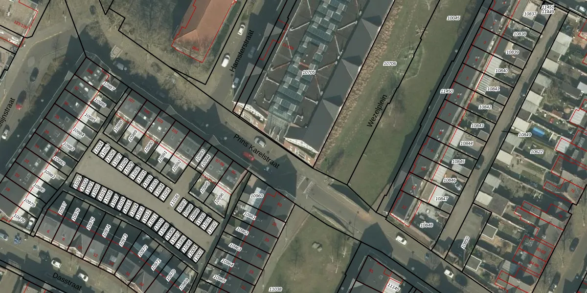Het perceel waarop Hamsterstraat 103 staat heeft een oppervlakte van 2513 m². Dit is een zeer groot perceel. De perceeloppervlakte wordt geregistreerd door het Kadaster. Gedetailleerde informatie over de maten van dit perceel kunt u vinden in het rapport Kadastrale kaart met maatvoering van Hamsterstraat 103.