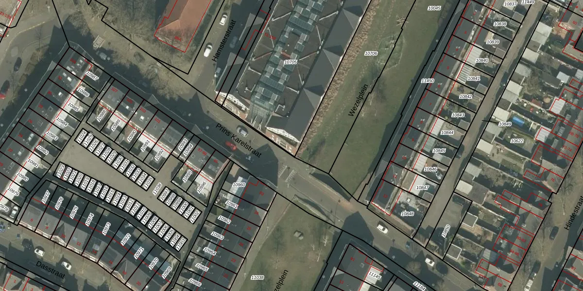 Het perceel waarop Hamsterstraat 17 staat heeft een oppervlakte van 2513 m². Dit is een zeer groot perceel. De perceeloppervlakte wordt geregistreerd door het Kadaster. Gedetailleerde informatie over de maten van dit perceel kunt u vinden in het rapport Kadastrale kaart met maatvoering van Hamsterstraat 17.
