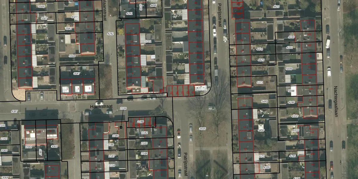 Het perceel waarop Havikstraat 7-C staat heeft een oppervlakte van 2500 m². Dit is een zeer groot perceel. De perceeloppervlakte wordt geregistreerd door het Kadaster. Gedetailleerde informatie over de maten van dit perceel kunt u vinden in het rapport Kadastrale kaart met maatvoering van Havikstraat 7-C.