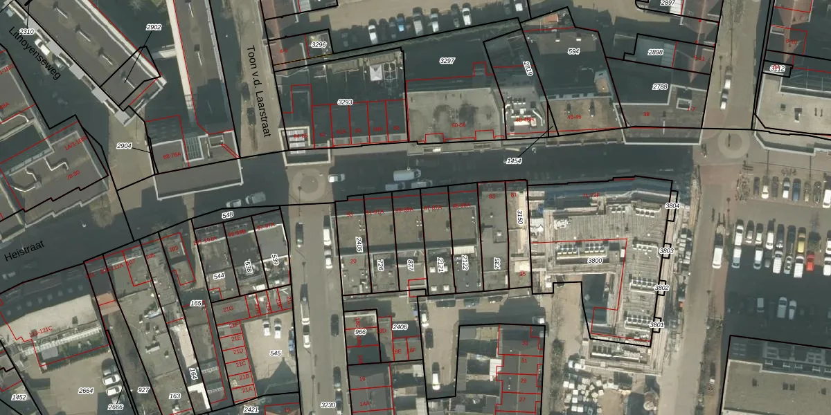 Het perceel waarop Heistraat 89 staat heeft een oppervlakte van 166 m². Dit is een middelgroot perceel. De perceeloppervlakte wordt geregistreerd door het Kadaster. Gedetailleerde informatie over de maten van dit perceel kunt u vinden in het rapport Kadastrale kaart met maatvoering van Heistraat 89.