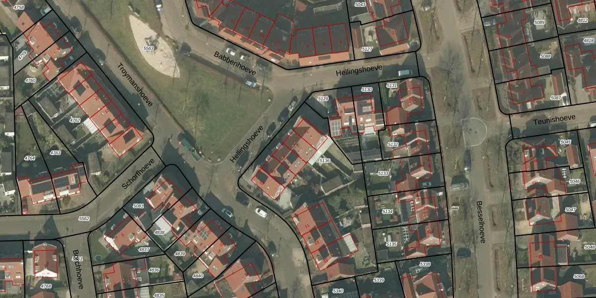Het adres is gelegen op perceel 5136 in de sectie U en de kadastrale gemeente Helmond. De kadastrale aanduiding is aldus HMD00-U-5136. De gemiddelde perceeloppervlakte in de kadastrale gemeente Helmond is 1470,79 m². Dit perceel is met zijn 1569 m² dus groter dan gemiddeld. Het grootste perceel in de kadastrale gemeente is 1,14 km². Het kleinste perceel heeft een oppervlakte van 0 m². Op het perceel zijn 8 adressen aanwezig. In de Basisregistratie Kadaster (BRK) werden de grenzen van het perceel geregistreerd op 29-05-2009.