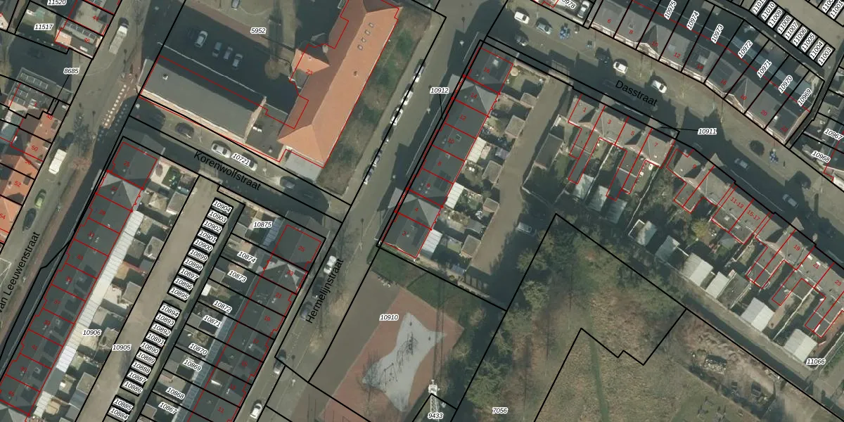 Het perceel waarop Hermelijnstraat 4 staat heeft een oppervlakte van 8790 m². Dit is een zeer groot perceel. De perceeloppervlakte wordt geregistreerd door het Kadaster. Gedetailleerde informatie over de maten van dit perceel kunt u vinden in het rapport Kadastrale kaart met maatvoering van Hermelijnstraat 4.