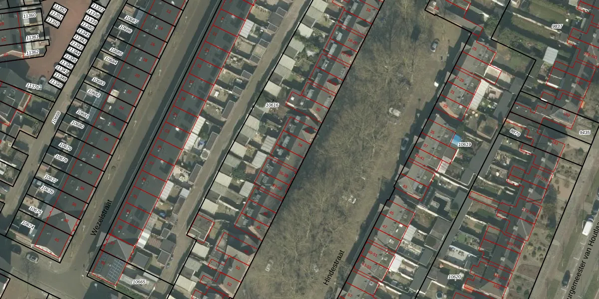 Hindestraat 34 is gelegen op kadastraal perceel HMD00C10616. Deze kadastrale aanduiding is uniek en wordt gebruikt door het Kadaster om eigendomsrechten en andere zakelijke rechten vast te leggen. Het perceel maakt onderdeel uit van de kadastrale gemeente Helmond.