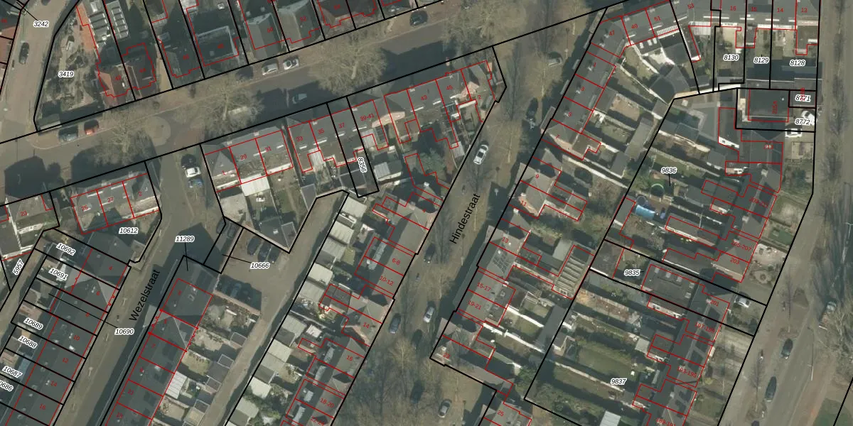 Het perceel waarop Hindestraat 4 staat heeft een oppervlakte van 5095 m². Dit is een zeer groot perceel. De perceeloppervlakte wordt geregistreerd door het Kadaster. Gedetailleerde informatie over de maten van dit perceel kunt u vinden in het rapport Kadastrale kaart met maatvoering van Hindestraat 4.