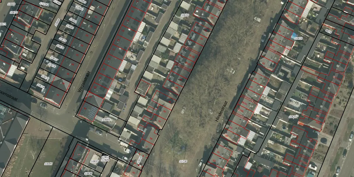 Hindestraat 46 is gelegen op kadastraal perceel HMD00C10616. Deze kadastrale aanduiding is uniek en wordt gebruikt door het Kadaster om eigendomsrechten en andere zakelijke rechten vast te leggen. Het perceel maakt onderdeel uit van de kadastrale gemeente Helmond.